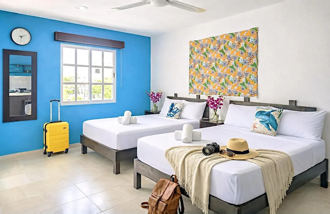 El 500M To Kid Friendly Beach 2 Spacious Suites Sleep 8 4 Beds Kitchen Fast Wifi Ac 5A6A Playa del Carmen de 90 m² está a tan solo 1 km de la Punta Esmeralda. Los huéspedes pueden relajarse y contemplar las vistas al patio desde el patio de este apartamento.